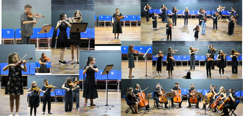 Orquestra Preparatória – primeiro contato do aluno com a vivência em grupo, onde aprende escuta, integração e fundamentos da prática coletiva.